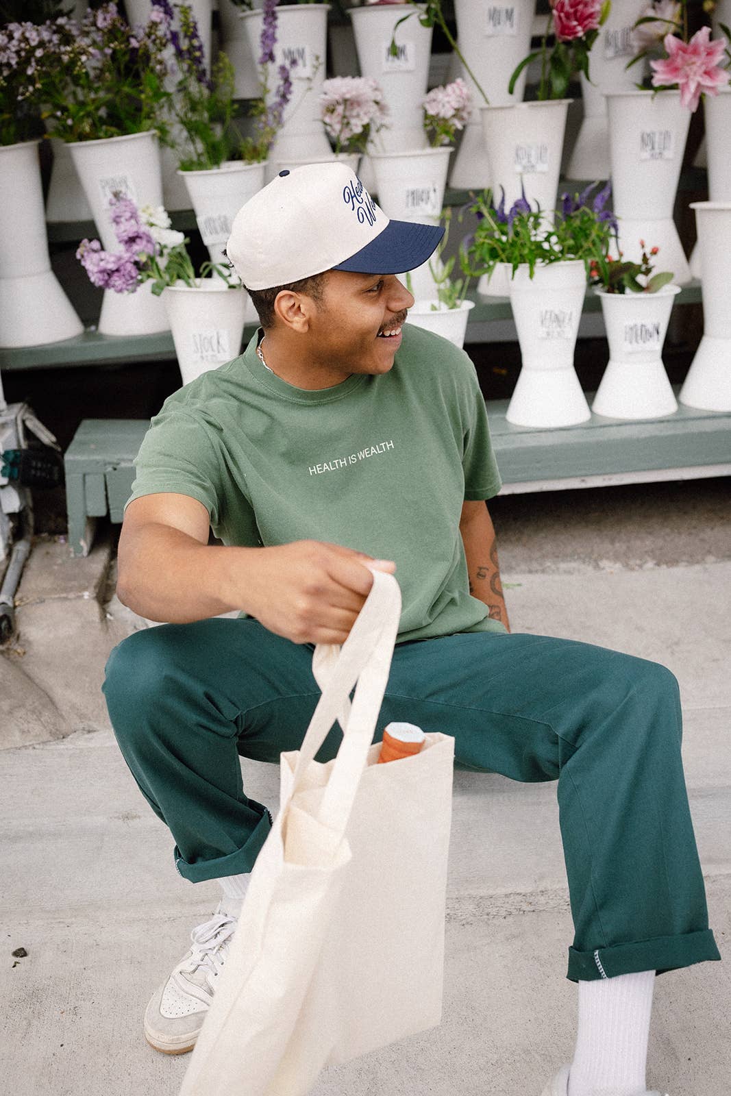 Stay stylish and healthy with our "Health Is Wealth" Hat! Protect yourself from the sun while looking fly. Cream/Navy